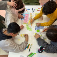 Our initial activity involved exploring the neighborhood’s public spaces, culminating at the Municipality’s Participation and Innovation Center. Following a brief presentation and discussion on the wealth of information that maps can convey, we collectively designed maps inspired by our explorations.