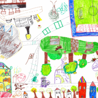 Collective drawing of the maps of the neighbourhood and a sample of the result.