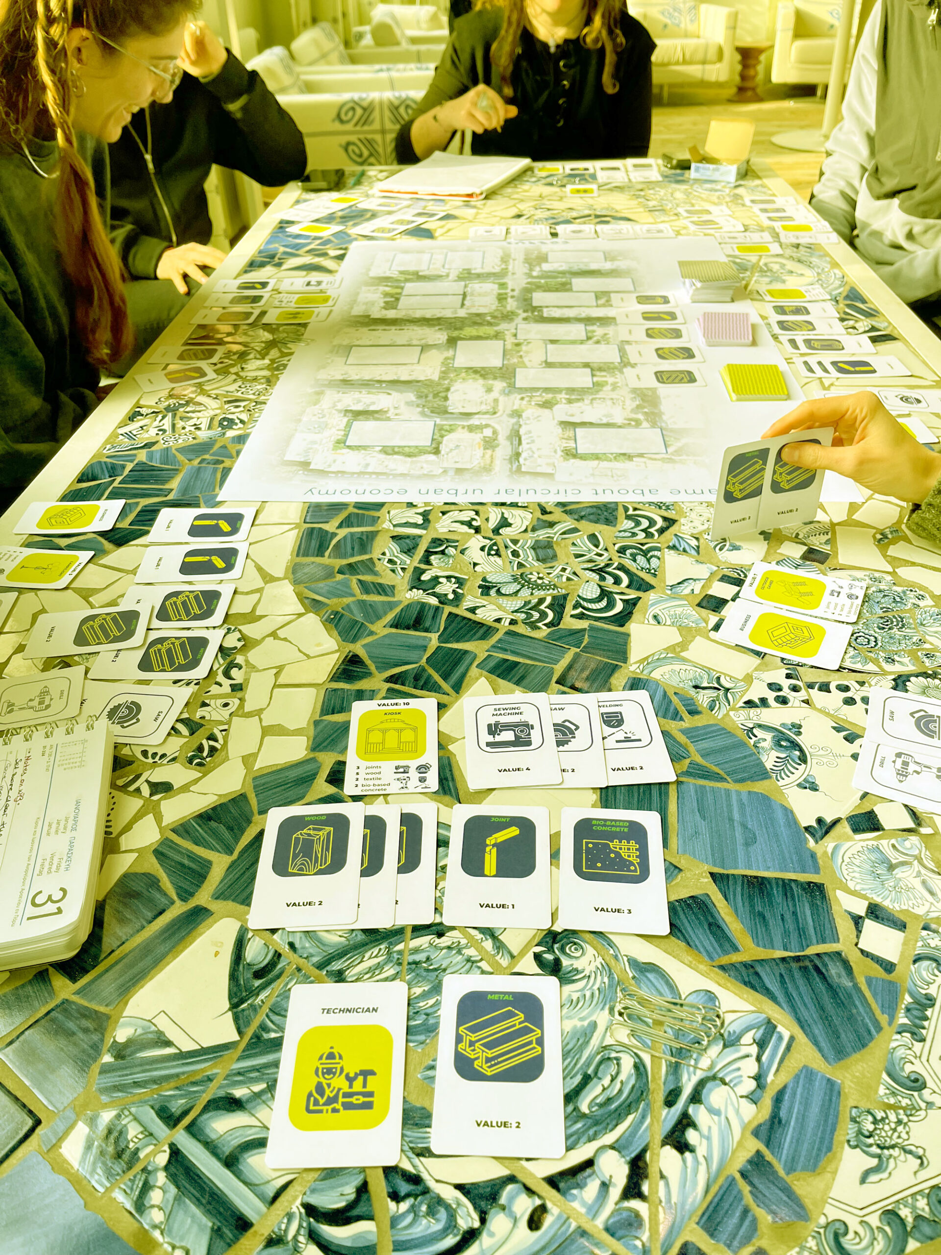 The board game fosters upcycling, circulation, collaboration, and participation through an exchange value system. Players intervene in open urban spaces to develop infrastructures that meet the needs of various stakeholders—but beware! Different stakeholders may have conflicting visions. Success depends on negotiation, coalition-building, and strategic decision-making.