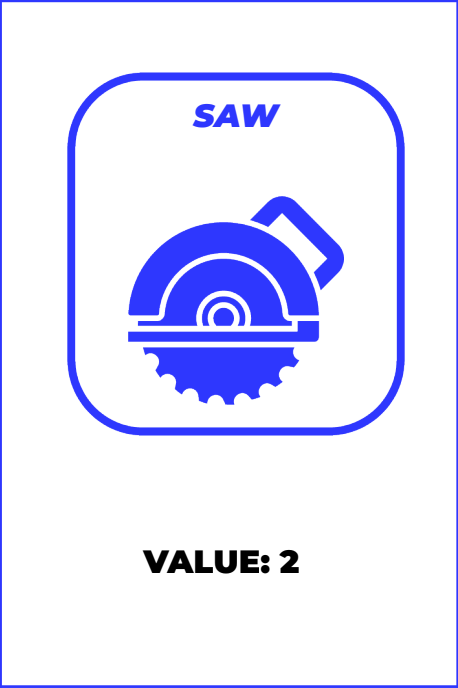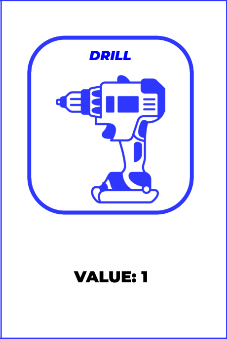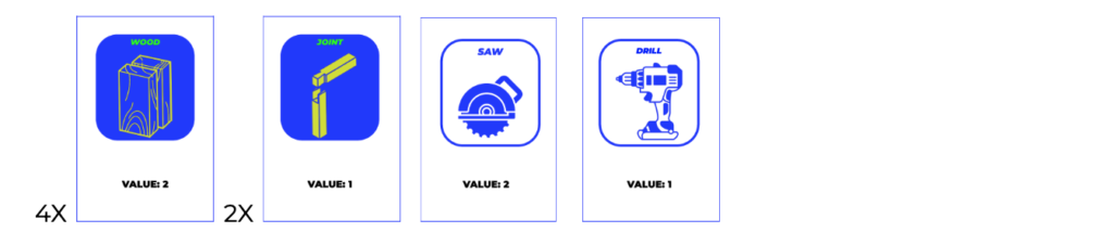 - Each player is secretly given 4 Material Cards and 2 Tool Cards.