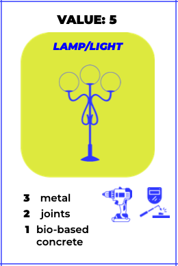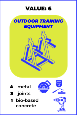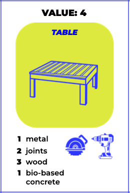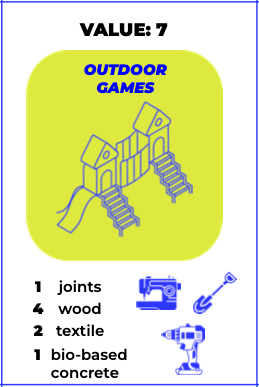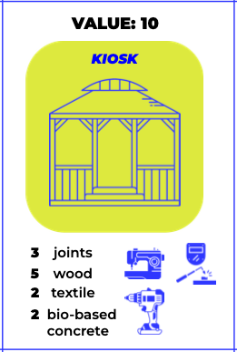 - build a structure and earn the respective tokens mentioned on the card. In the case of a player using at least one tool or material from the Community Lab, then the player gets one CIRCULARITY Reward