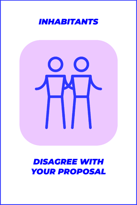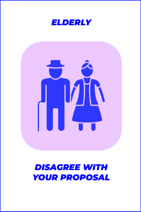 The player takes one decision making card. The player who has the role of local business represents the stakeholder who is against the intervention. All players participate for 5 minutes in an open discussion with arguments to decide if the intervention should be made. In the end players vote for elderly’s intervention or against it to decide if Elderly will build the bench and take the reward tokens.